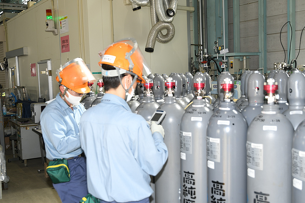 無機除草剤・イソシアネートモノマー・高純度ガス・溶剤・半導体関連高純度薬品・高純度金属粉等の製造補助業務。