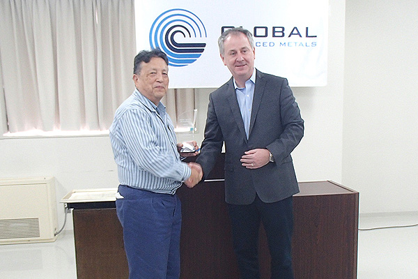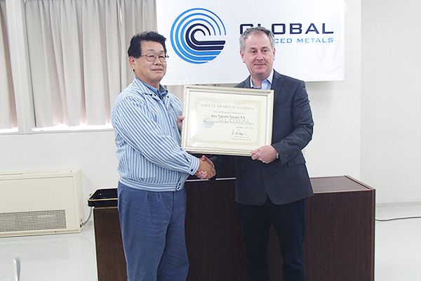 2019年11月19日に、グローバルアドバンストメタルジャパン株式会社様より、15年間の長きにわたる「無事故・無災害記録と貢献」に対し、トロフィーと賞状を頂きました。